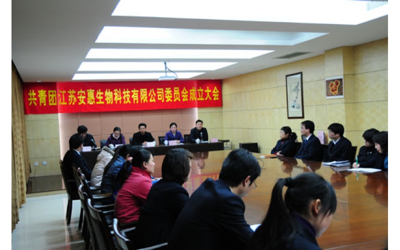 2009年3月3日,共青團江蘇安惠生物科技有限公司委員會成立大會在安惠公司中會議室舉行。共青團南通市委副書記趙新葉、共青團南通市委組織部部長顏海燕、共青團開發(fā)區(qū)委書記李宏圖等出席會議。