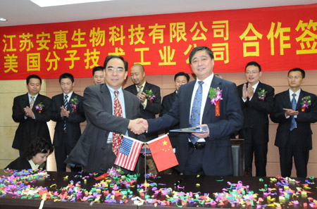 2008年6月17日,安惠公司和美國分子技術(shù)工業(yè)有限公司簽約,成立南通中美健康產(chǎn)業(yè)創(chuàng)新研究有限公司。