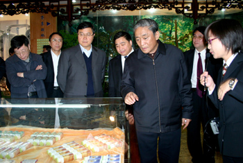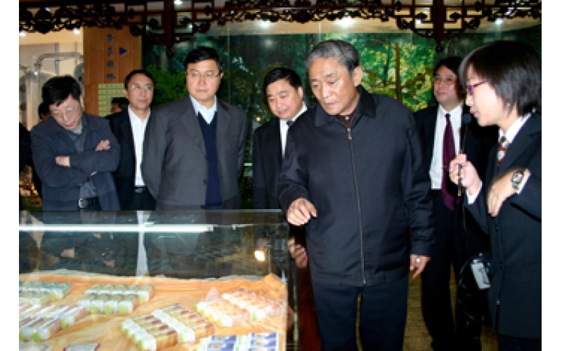 2007年11月4日,全國(guó)人大常委會(huì)副委員長(zhǎng)熱地(右三)一行參觀安惠公司的中華靈芝文化館。