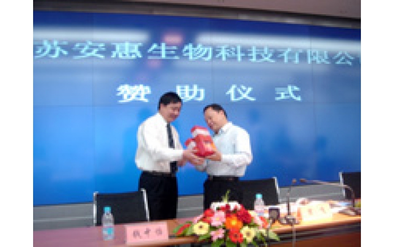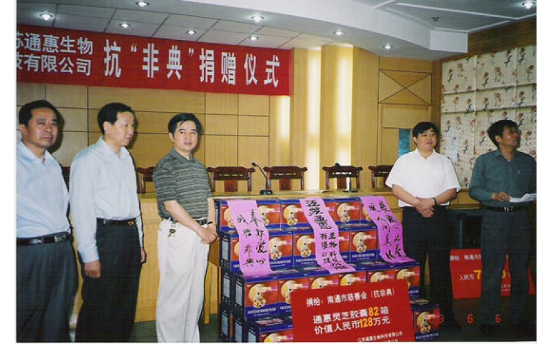 2004年9月24日,陳惠董事長(zhǎng)向南通市副市長(zhǎng)宋飛捐贈(zèng)的公司產(chǎn)品作為首屆世界大城市帶發(fā)展高層論壇專(zhuān)用保健品。