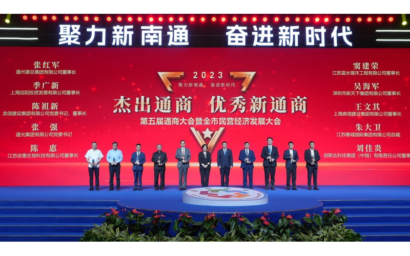 2023年5月21日,第五屆通商大會(huì)暨南通民營(yíng)經(jīng)濟(jì)發(fā)展大會(huì)在南通國(guó)際會(huì)議中心舉行。包括兩院院士、高校院所負(fù)責(zé)人、央企國(guó)企負(fù)責(zé)人、海內(nèi)外通商代表等在內(nèi)的600余名鄉(xiāng)賢、嘉賓相聚南通,共敘鄉(xiāng)情、共謀發(fā)展、共話未來(lái)。會(huì)上,安惠公司黨委書(shū)記、董事長(zhǎng)陳惠再獲杰出通商殊榮。