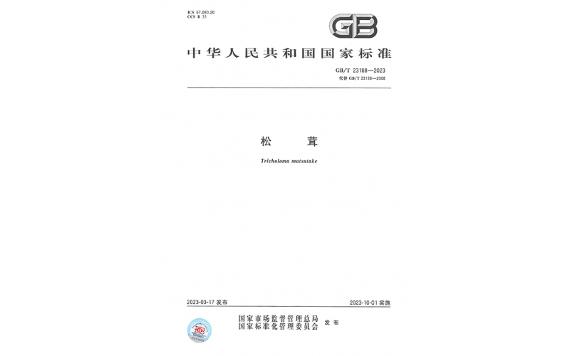 2023年3月,由江蘇安惠生物科技有限公司參與修訂的國(guó)標(biāo)GB/T 23188-2023《松茸》于中華人民共和國(guó)國(guó)家標(biāo)準(zhǔn)公告(2023年第1號(hào))發(fā)布,將于2023年10月1日起正式實(shí)施。