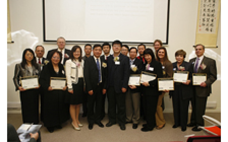中領(lǐng)館梅建平參贊與首屆世界養(yǎng)生協(xié)會(huì)部分理事合影