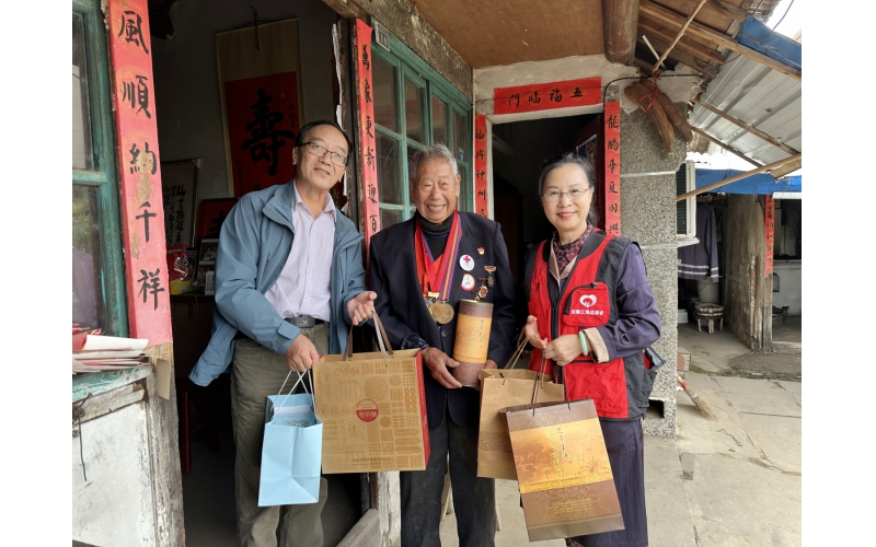 慰問團(tuán)一行抵達(dá)石超老人家中,為老人送上精心準(zhǔn)備的安惠健康飲品,并圍坐在老人身旁,關(guān)切詢問老人的身體狀況和生活情況。雖已至期頤之年,石超老人精神矍鑠,見到前來慰問的團(tuán)員青年,臉上洋溢著慈祥的笑容。在輕松溫馨的氛圍中,老人緩緩打開記憶的閘門,深情講述起那段波瀾壯闊的革命歲月。