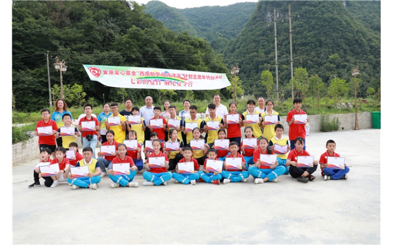 2018年是安惠愛心基金“西南助學(xué) 陽光沐浴”計劃實施的第五年。每年安惠江海志愿者們都會來到貴州省獨山縣麻尾鎮(zhèn)開展愛心助學(xué)活動,與這里的師生們相聚。7月8-12日,志愿者們帶著6名南通的孩子們再次踏上這片土地,和當(dāng)?shù)貙W(xué)生互動、交流、學(xué)習(xí),一起度過一段非常有意義的快樂時光。安惠公司副董事長陸漢萍也專程來到麻尾,看望一直牽掛著的學(xué)生們,走訪受資助的學(xué)生,并實地了解空氣能熱水器的使用情況。